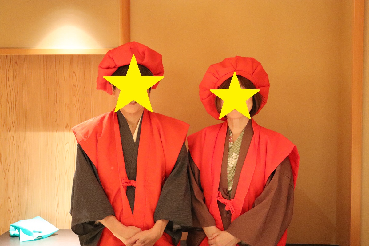 還暦祝いという事で赤いちゃんちゃんこも用意頂きました。 ※写真は1月と3月に還暦を迎えた両親です。